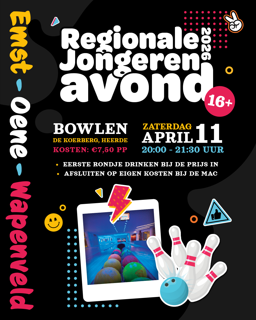 info Bowlen met de jeugd van 16+ | download flyer |samen met de jongeren uit Oene en Emst | zaterdag 11 april